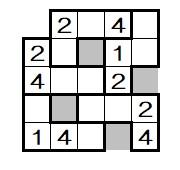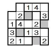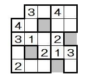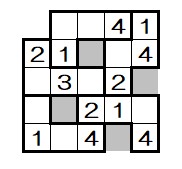 数独より面白いスーパーナンプレ 。S405-08。このパズルは子供用に易しく作ってあります。Sナンプレは数独に似ているので数独に親しんだ方はすぐに遊べます。使う数字が普通の数独より少ないので、楽しくかつ苦痛が少なく遊べます。形が複雑なので楽しく遊べます。小さい問題から大きい問題まであるので子供から大人までご自分にあった難しさで遊べます。