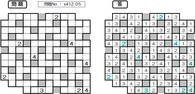 このパズルは1~4を使うSナンプレです。